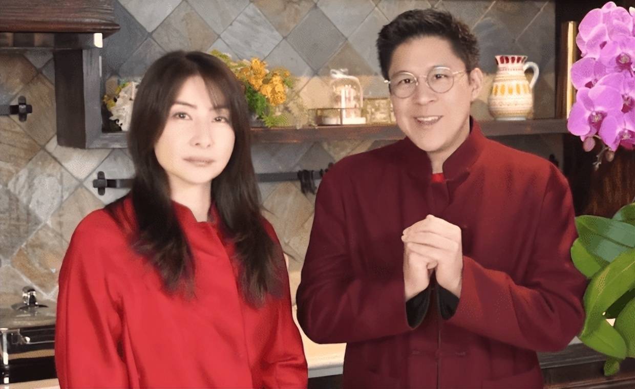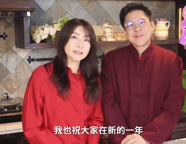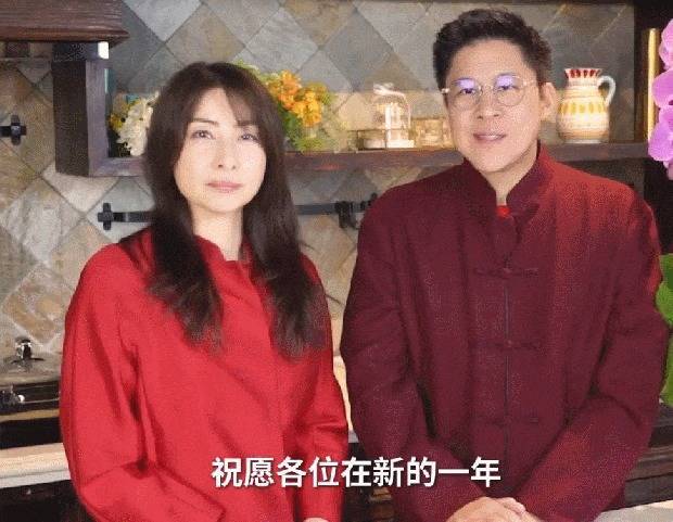 霍启刚、郭晶晶一同向大家拜年,笑容满面,心情愉悦。